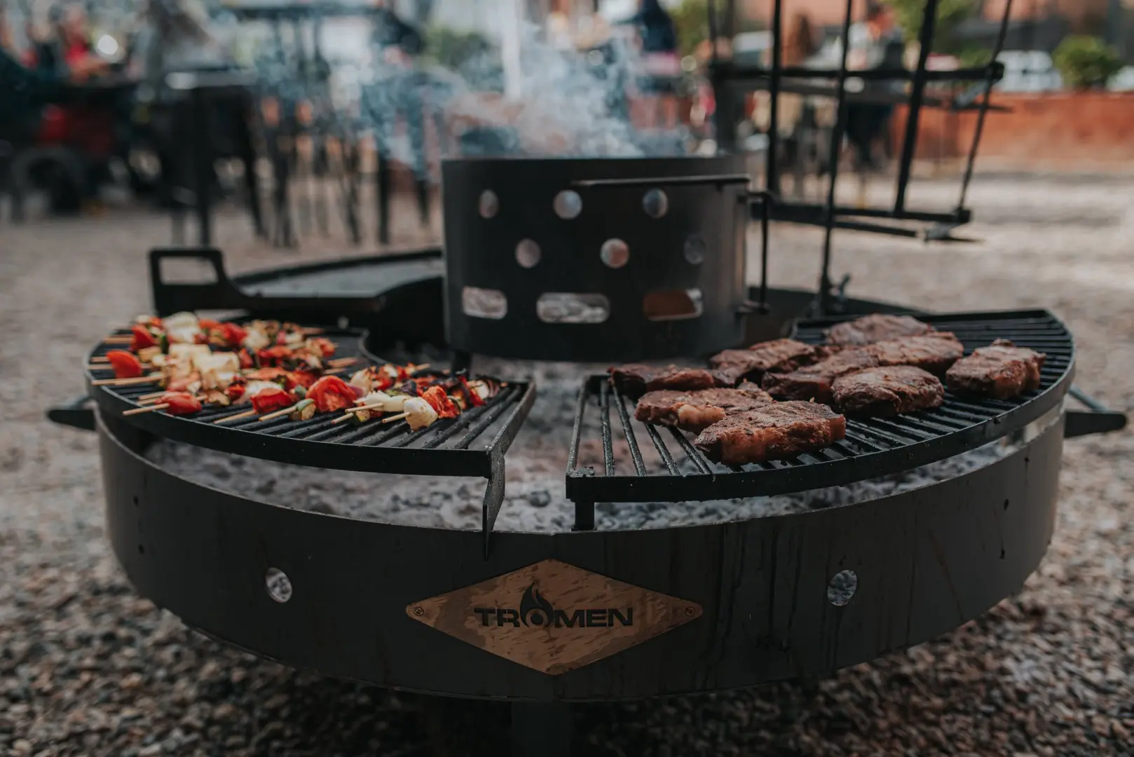 Las parrillas móviles de alto rendimiento, como la Gaucha o la Federal dentro de la propuesta de Tromen, buscan replicar esa capacidad y potencia, pero incorporan mejoras funcionales. Al ser equipos móviles, permiten adaptar su uso a distintos espacios y situaciones. Además, la incorporación de tapa —y en el caso de la Federal, pirómetro— facilita un control térmico más preciso, optimizando la cocción y el aprovechamiento del calor.
