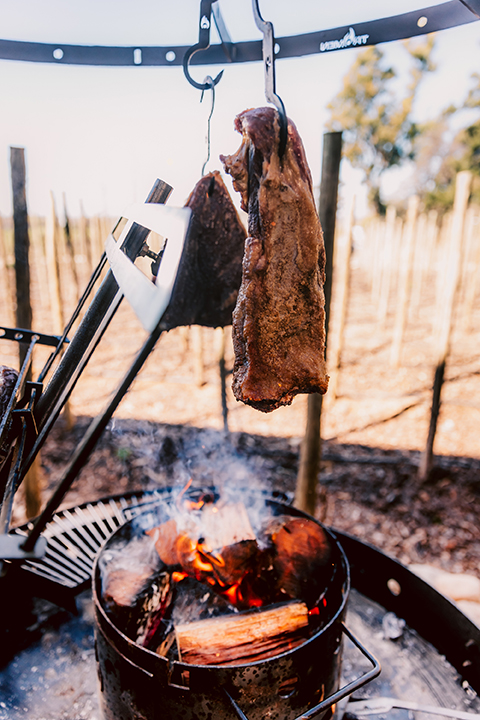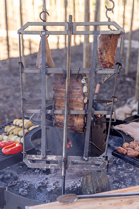 The ideal grill for fire lovers. It has movable grill and griddle modules. Rotisserie and stoker.