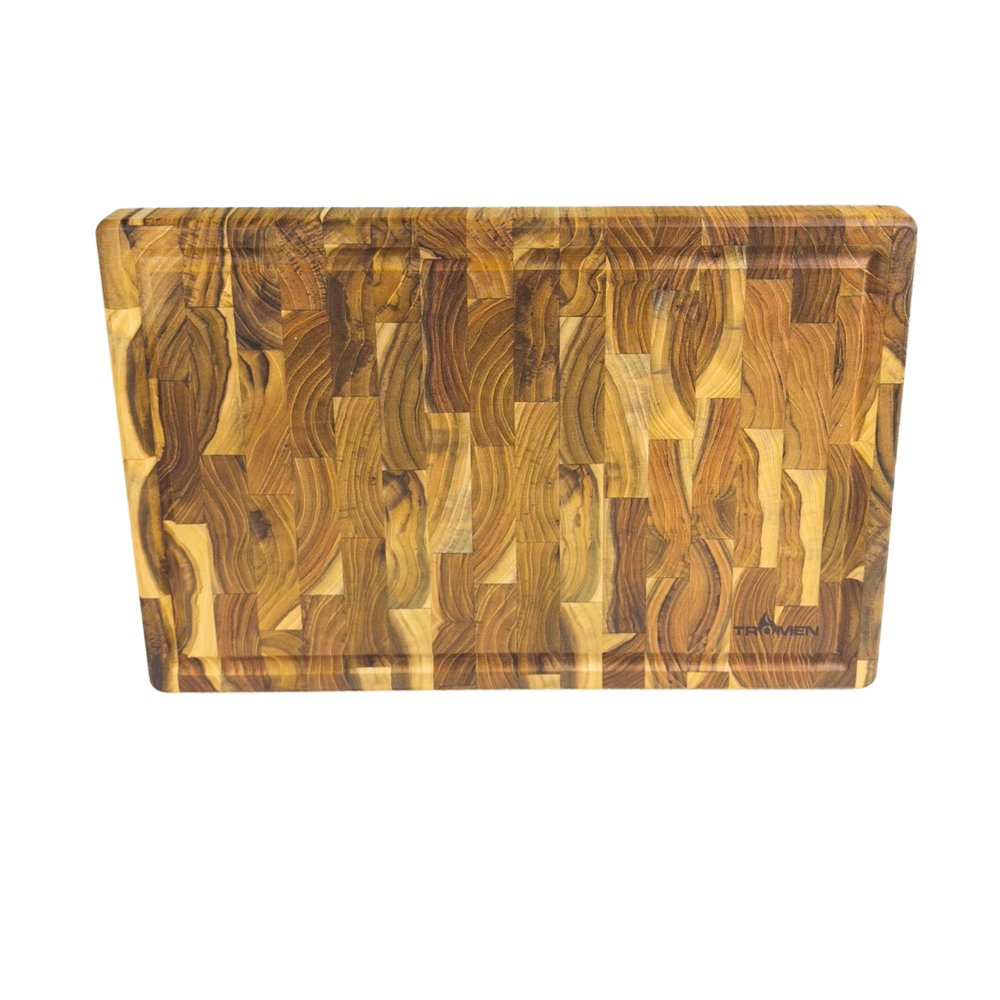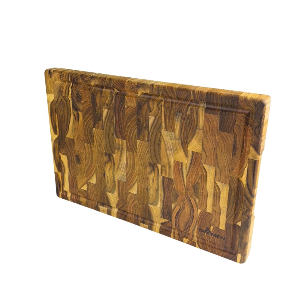 Robust board made of extreme teak wood , renowned for its strength and durability. It protects knife edges and offers a unique aesthetic thanks to the intertwined design of natural veins. Ideal for intensive use in the kitchen or grill, combining functionality, elegance and long life.