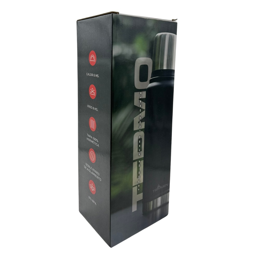 Mantén tus bebidas a la temperatura ideal por horas con el termo Tromen de 1 litro. Diseñado para los amantes del café, el mate o las aventuras al aire libre, combina durabilidad, estilo y funcionalidad.
